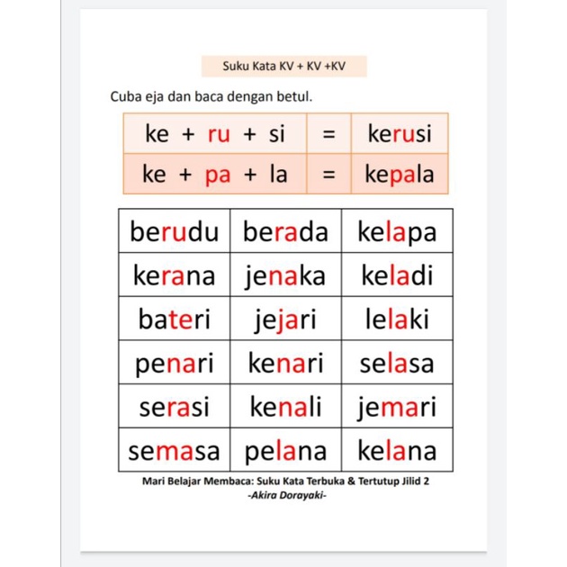Suku kata terbuka jawi tahun 1 kuiz rancangan mainan latihan membaca tahun 1. Cara cepat belajar mengeja &membaca satu dan dua suku kata untuk anak tk/paud.